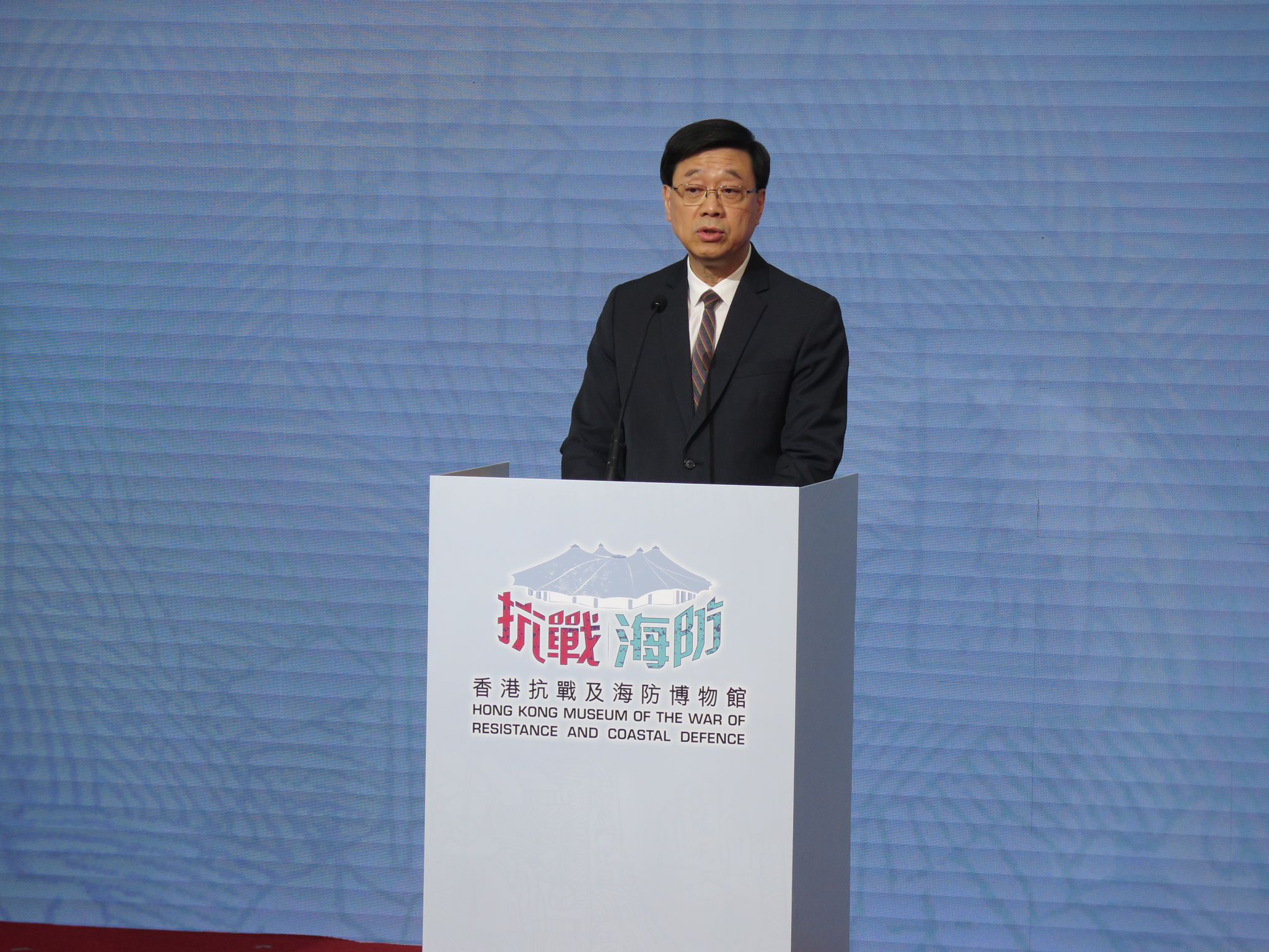 李家超在博物館揭幕典禮致辭時表示,特區政府特別在抗戰勝利紀念日,這個別具歷史意義的日子為博物館揭幕,彰顯特區銘記祖國人民團結抗敵的歷史使命,亦緬懷捨身護國的抗日英烈及遇難同胞。