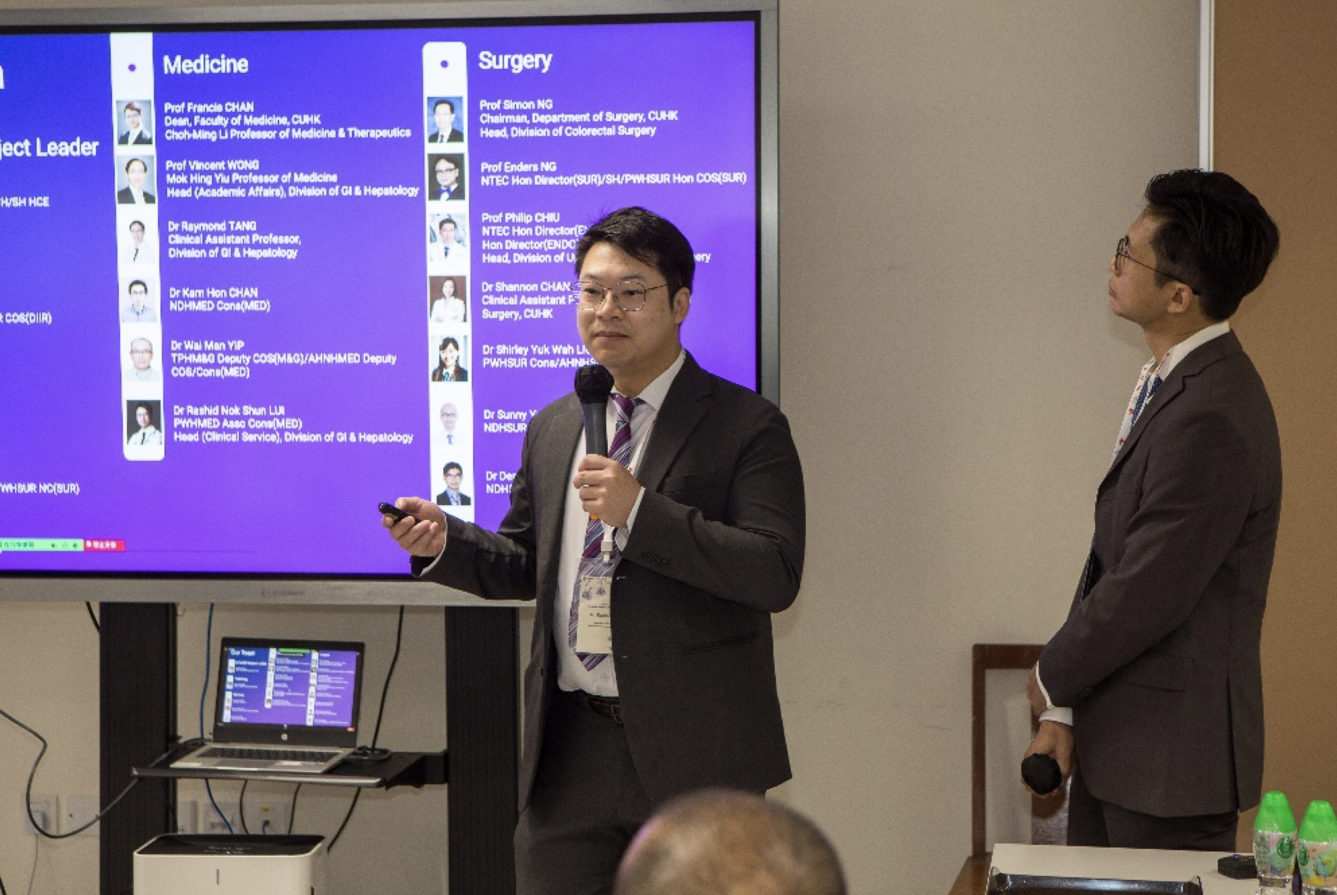 內鏡中心團隊成員,威爾斯親王醫院上消化道及代謝外科主任陳詩瓏醫生(左)與威爾斯親王醫院內鏡中心副總監葉瀚智醫生(右)介紹團隊成果。