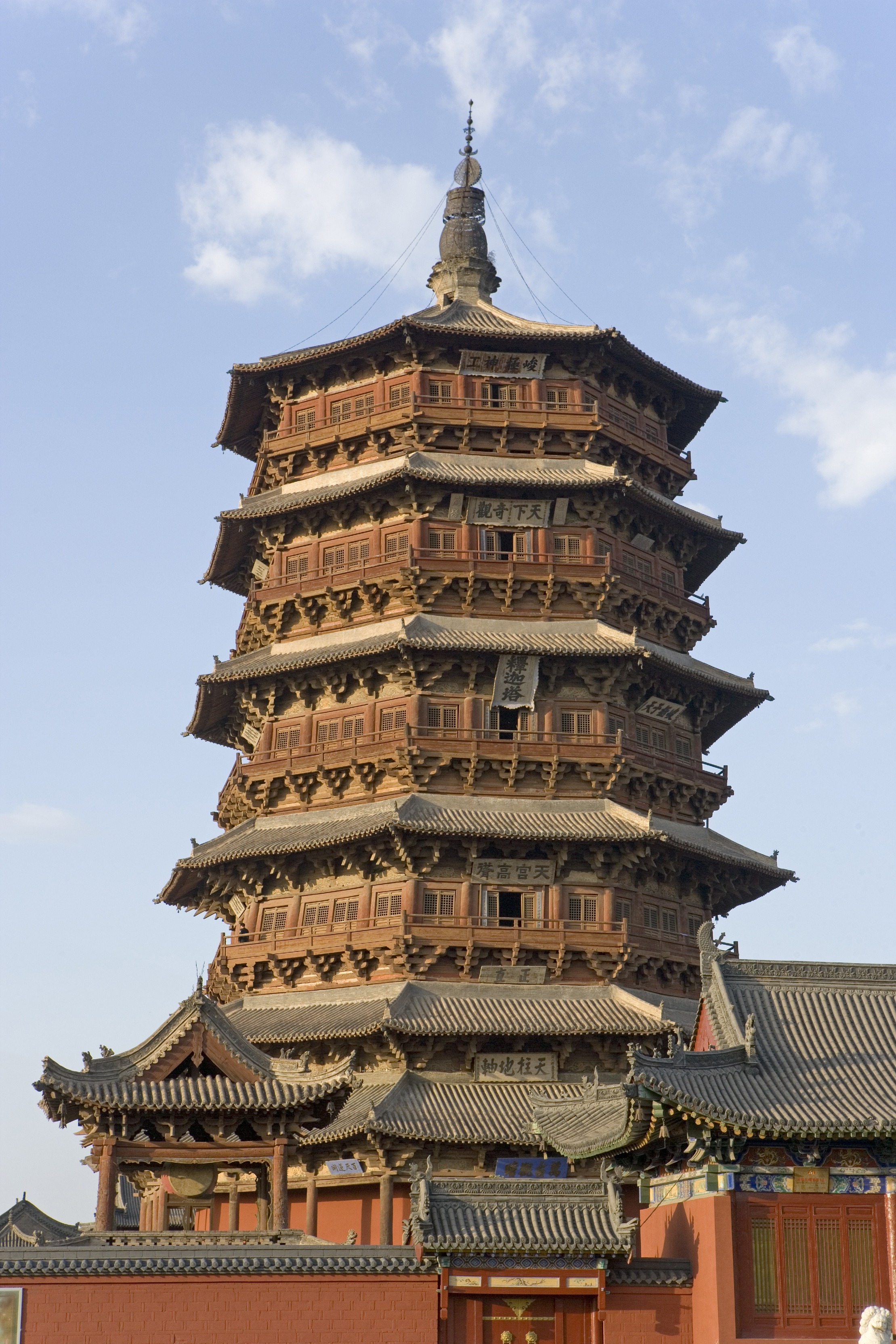 位於山西朔州應縣城的應縣木塔,始建於遼代,直至金代增修完畢,是中國現存最古老及最高的純木結構樓閣式建築。