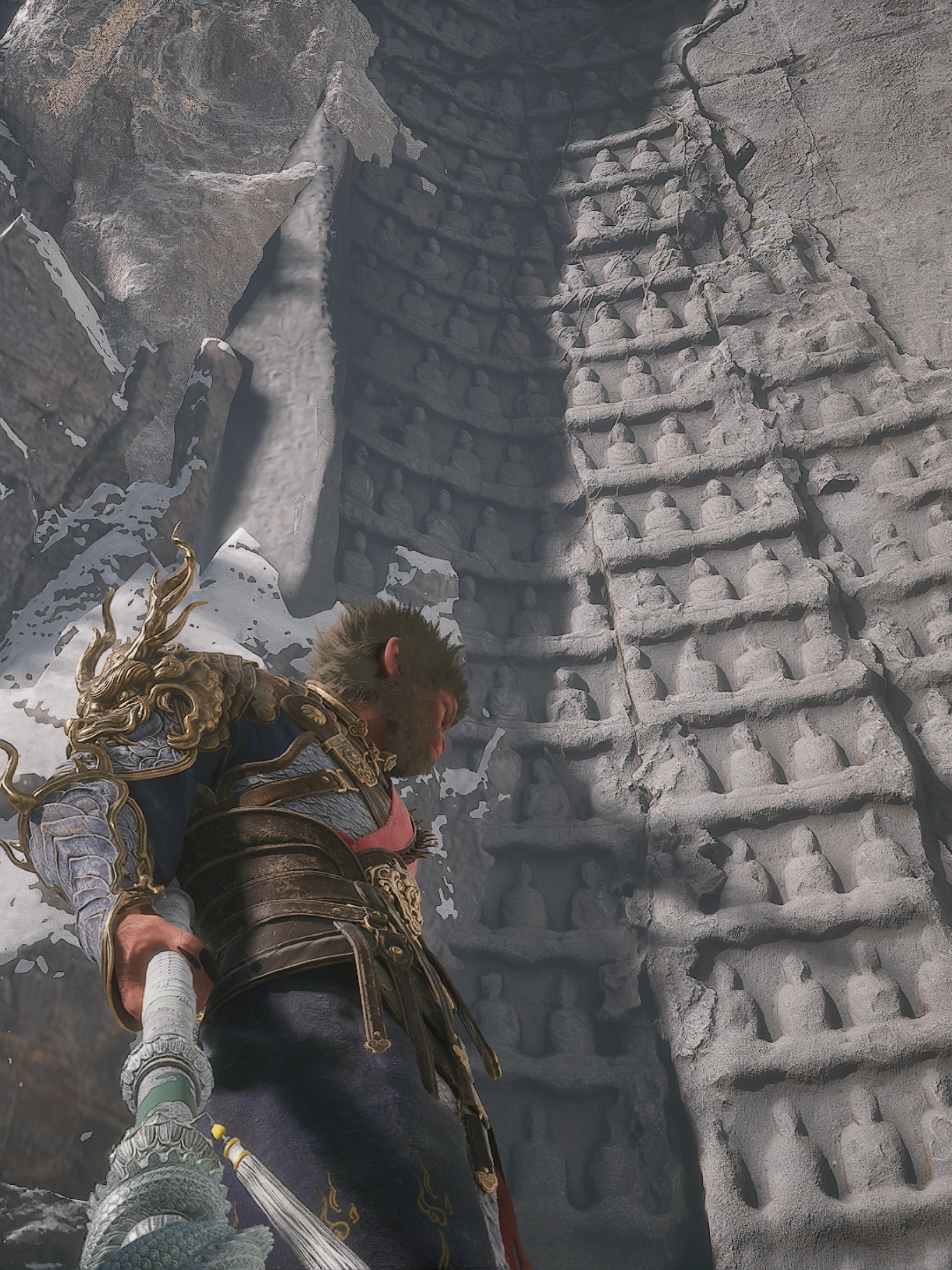 在《黑神話:悟空》中,山西大同雲岡石窟的遊戲畫面。(圖片來源:山西省文化及旅遊廳@小紅書)