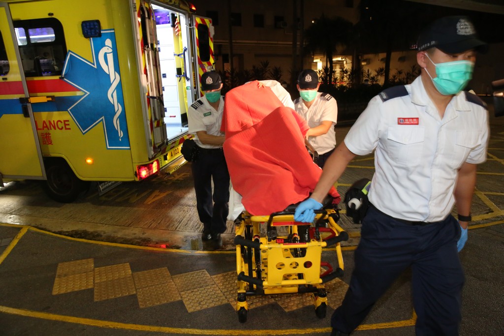 救護員將女事主送往醫院治療。