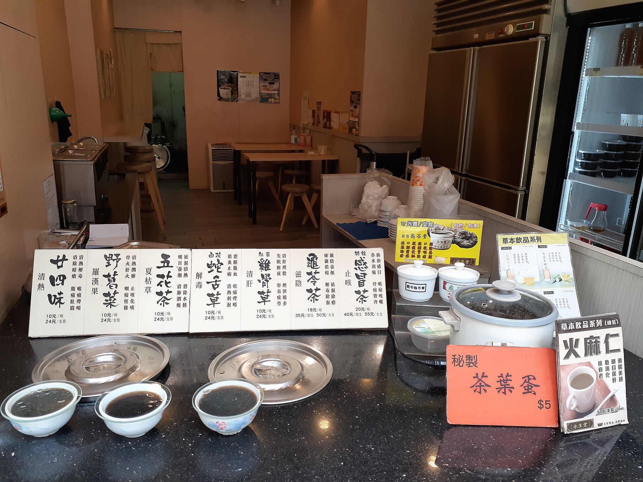 涼茶鋪盛行於五十、六十年代,街頭巷尾隨處可見。一般都是店前左右設置兩個大櫃枱,上面鋪嵌著白瓷磚。櫃枱上擺著兩個大銅葫蘆壺子,裏面盛著廿四味涼茶和五花茶。一苦一甜,成為鎮店之寶。此外還有火麻仁、銀菊露等,後來還加上龜苓糕。