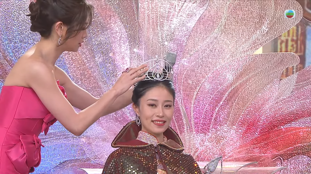 麥美恩幫倪樂琳戴好個后冠的小動作,得到網民大讚。(圖:網上截圖)