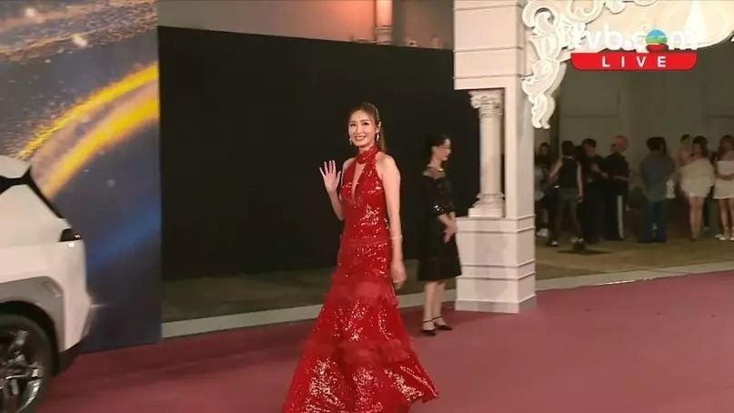 陳貝兒疑似在行紅地毯時搶風頭而遭到批評。(圖:TVB直播截圖)
