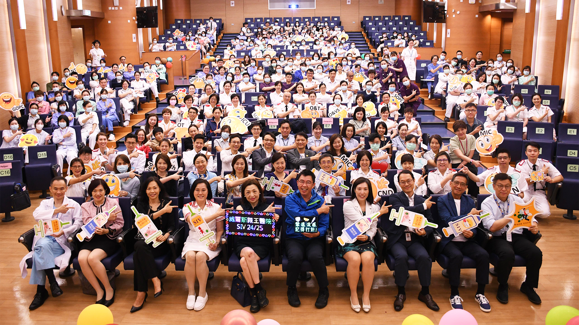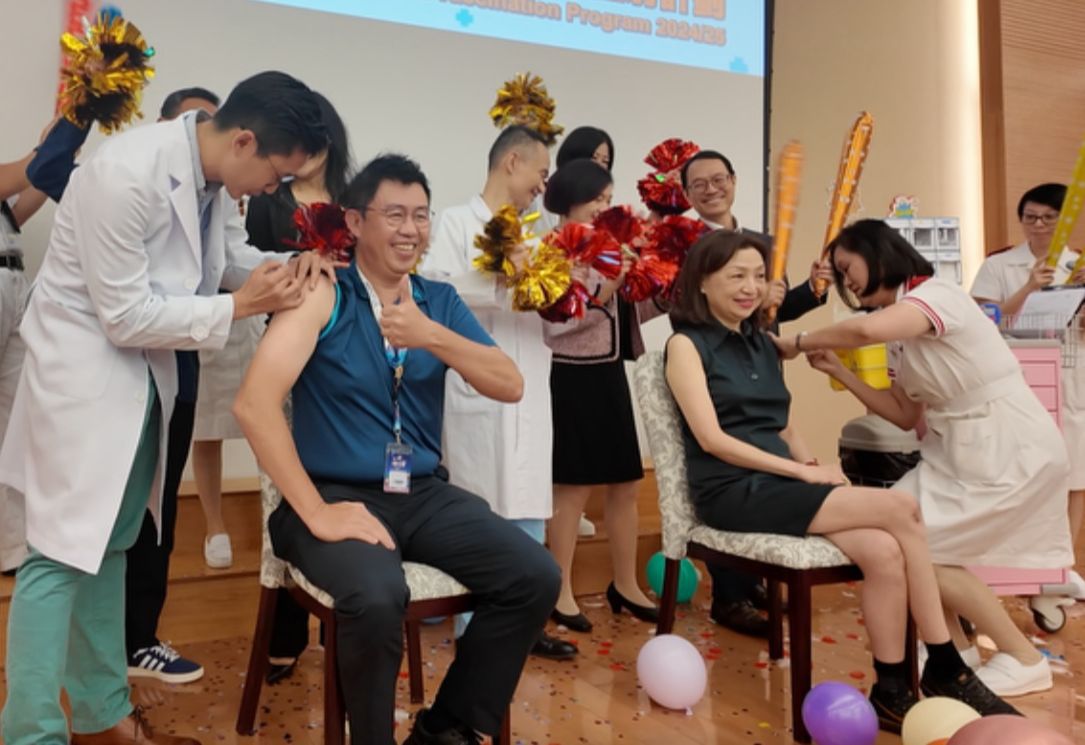 威爾斯親王醫院 「2024/25年度員工季節性流感疫苗注射計劃」已經啟動啦!好開心得到眾多嘉賓和員工昨日出席支持啟動典禮,場面熱鬧溫馨,更加設有驚喜環節。新界東醫院聯網總監及威院醫院行政總監鍾健禮醫生更夥拍兩位副院長:鄭志雄醫生和張漢明醫生,粉墨登場拍了宣傳短片,在啟動禮上首播,非常搞笑,氣氛高漲!