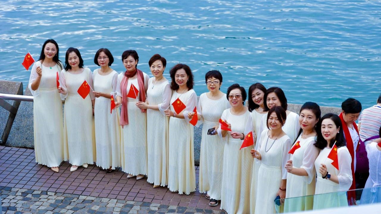 今次盛會亦是中企協婦委會合唱團的首次演出。盡管演出時間較長,又恰逢陰雨,但委員們始終以飽滿的精神熱情放聲歌唱,優雅展示著優秀女性代表的風采,圓滿完成本次演出,演唱會除中企協婦委會合唱團,亦邀請了來自世界各地的優秀合唱團組成了千人盛會,共同在香港青年愛樂樂團的伴奏下,為香港市民演繹了《黃河大合唱》、新時代佳作《今朝》、香港回歸之歌《東方之珠》,以及彰顯香港精神的《獅子山下》等經典作品,以激昂的旋律向祖國75歲生日獻禮。