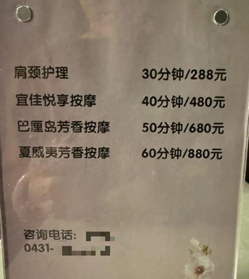 酒店按摩標價牌左下角有標註「由第三方獨立經營」。