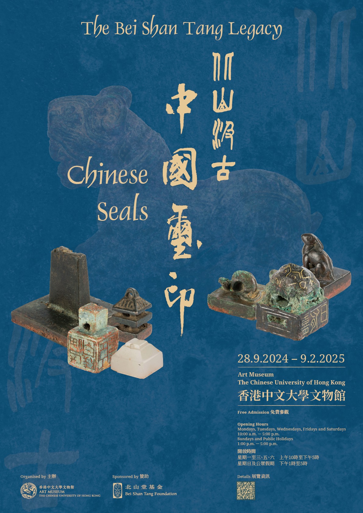 香港中文大學文物館(文物館)自開館以來,獲北山堂贈予近1800方中國璽印,藏品年代穿越秦代到現代,其數量多、品類豐富,並具學術與藝術價值,讓文物館此項收藏在全球大學博物館中獨佔鰲頭。