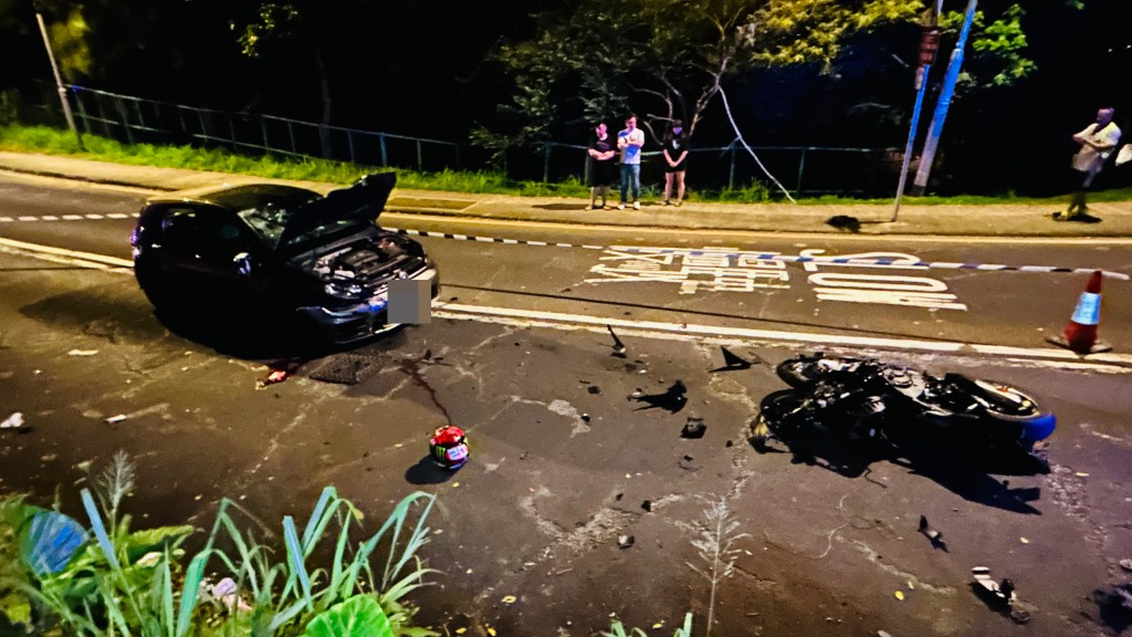 消息指,電單車鐵騎士晚上與友人在荃錦公路一帶車聚,兩人向荃灣方向行駛。事主的友人在前方先行落山,事主尾隨在後,當駛至曹公潭對開時,突然聽到後方發出一聲巨響,友人遲遲未見事主出現,掉頭查看下發現事主發生交通意外。消息稱,涉事私家車意外後,車身越過對面行車線,懷疑事發時有越線之嫌。