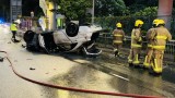 青衣西路兩私家車相撞 一車翻轉起火另一車司機棄車逃走