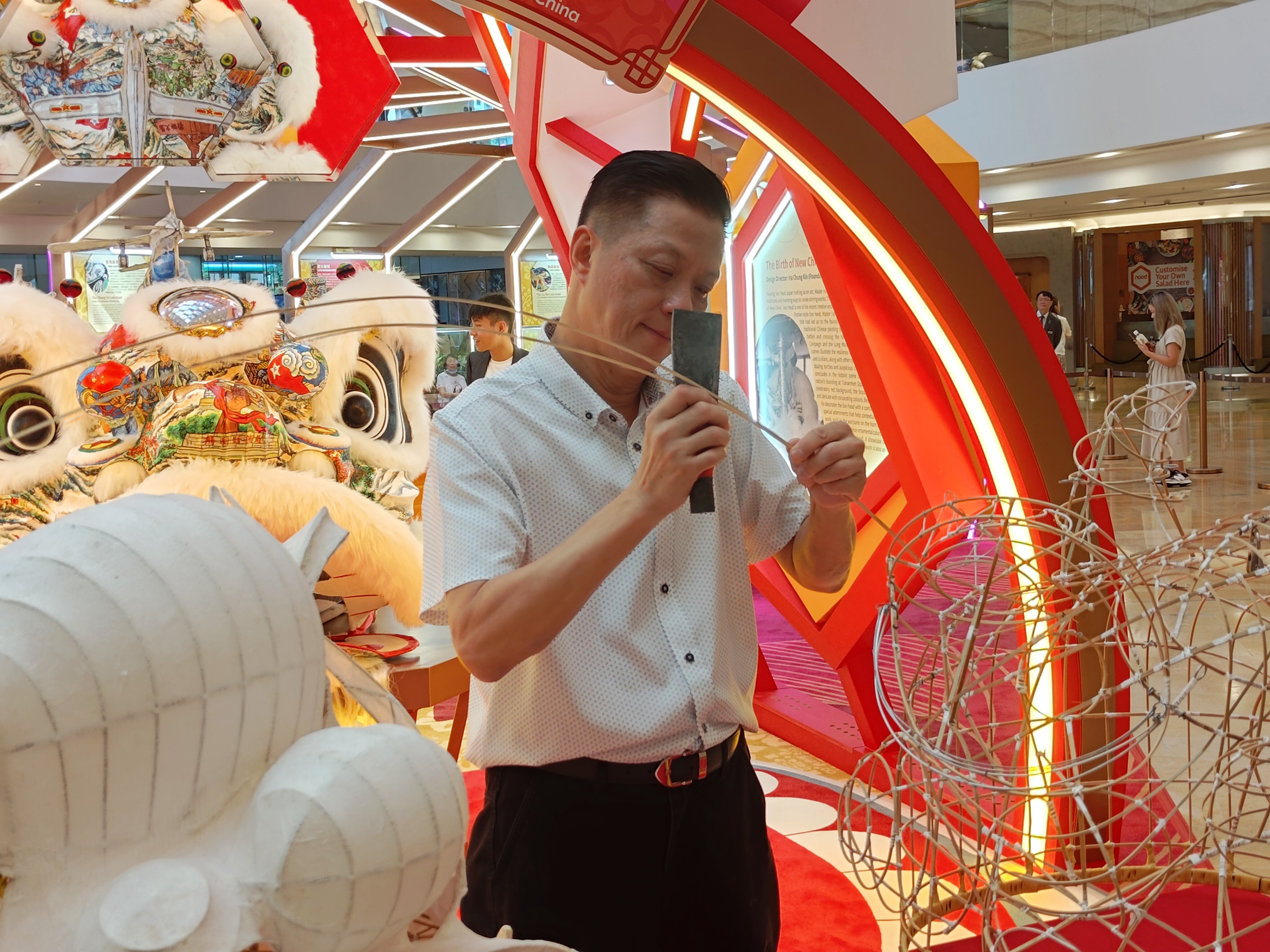 【橙訊】一個獅簍,百條竹篾,千個紙結,縱橫交錯。獅頭紮作,又豈只是一門手藝。為展現和傳承紮作非遺手藝,中西區民政事務處於金鐘太古廣場舉辦「傳承中華優秀傳統文化:獅頭紮作展覽」,帶領公眾由獅頭紮作的四步曲:「紮」、「撲」、「寫」、「裝」出發,品味紮作的非凡技藝,感受舞獅的喜慶氛圍。