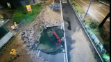 事發在星期日凌晨。荔枝角道近長沙灣警署往九龍方向行車道有地下水管爆裂,引致路面下陷,路陷面積約4米乘4米、深兩米。一輛的士跌入坑洞,司機及時離開,他事後報稱不適送院,檢查後無大礙。現場進行緊急維修,期間交通需要改道,附近用戶食水無受影響。