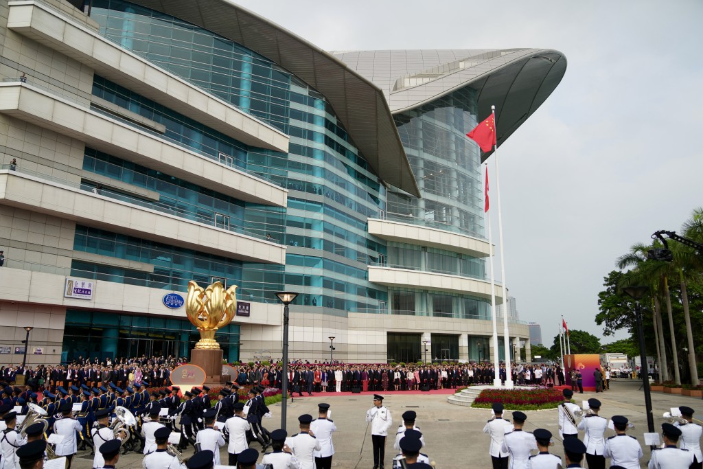 特區政府今早8時在灣仔金紫荊廣場舉行升旗儀式。