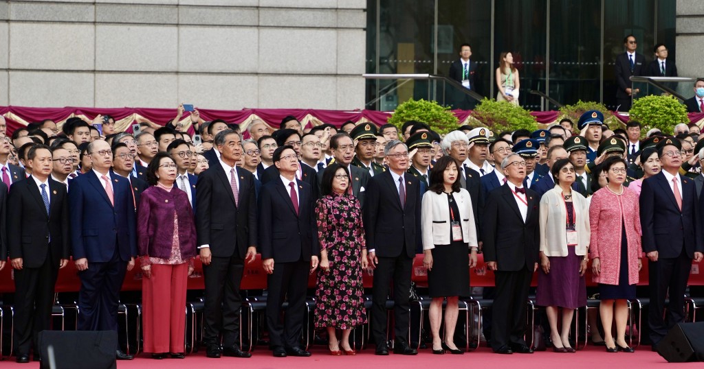 行政長官李家超、全國政協副主席梁振英、中聯辦主任鄭雁雄、前行政長官林鄭月娥、曾蔭權與政府高層官員、立法會主席梁君彥等人出席升旗儀式。另外社會各界代表及制服團隊成員亦有出席。