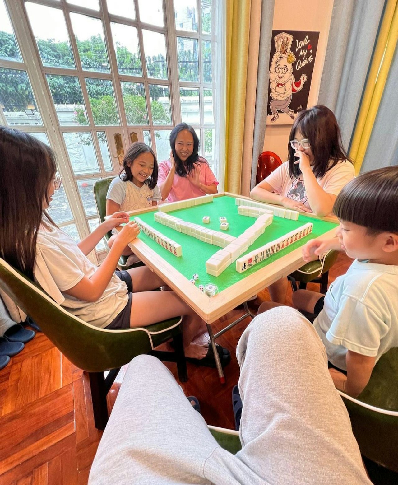 【橙訊】林盛斌(Bob)出名是圈中的「多仔公」,同太太於2007年結婚後先後育有三個囡囡及一個仔仔,為了養起頭家,Bob身兼百職又做演員,又做主持,近日更成為娛樂公司老闆。過去陳敏之就曾經爆料Bob身家過10億,而日前他舉家由原住的九龍塘四層獨立屋,搬去同區更大的豪宅。日前Bob就趁住國慶在社交平公開一家六口打麻雀的照片,意外令豪宅內部曝光。