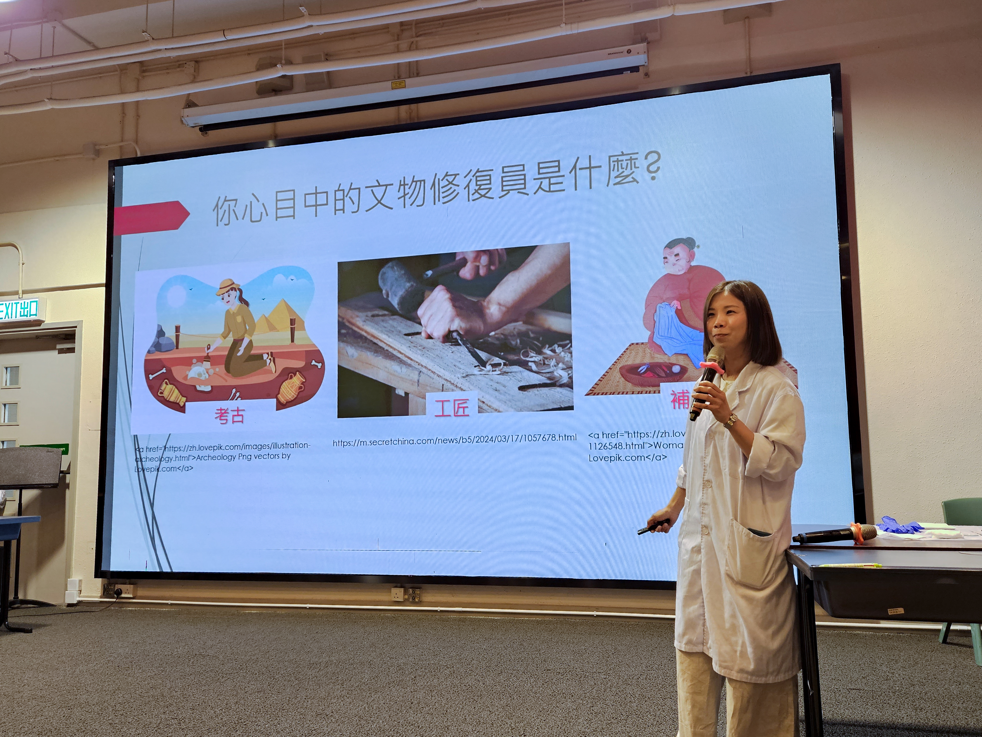 甘婉君介紹稱,文物修復辦事處現有共四十七名文物修復人員,分別在香港藝術館、香港文化博物館、香港歷史博物館和香港電影資料館的十四間修復實驗室工作,負責制定、推行及評估各項修護項目,為香港康文署轄下所有公共博物館提供文物修復服務,而最大的實驗室則位於香港文化博物館。她本人是香港中文大學材料科學系出身,加入文化修復辦事處後,還分別於英國、北京故宮、挪威等地培訓,有十餘年的文物修復經驗。