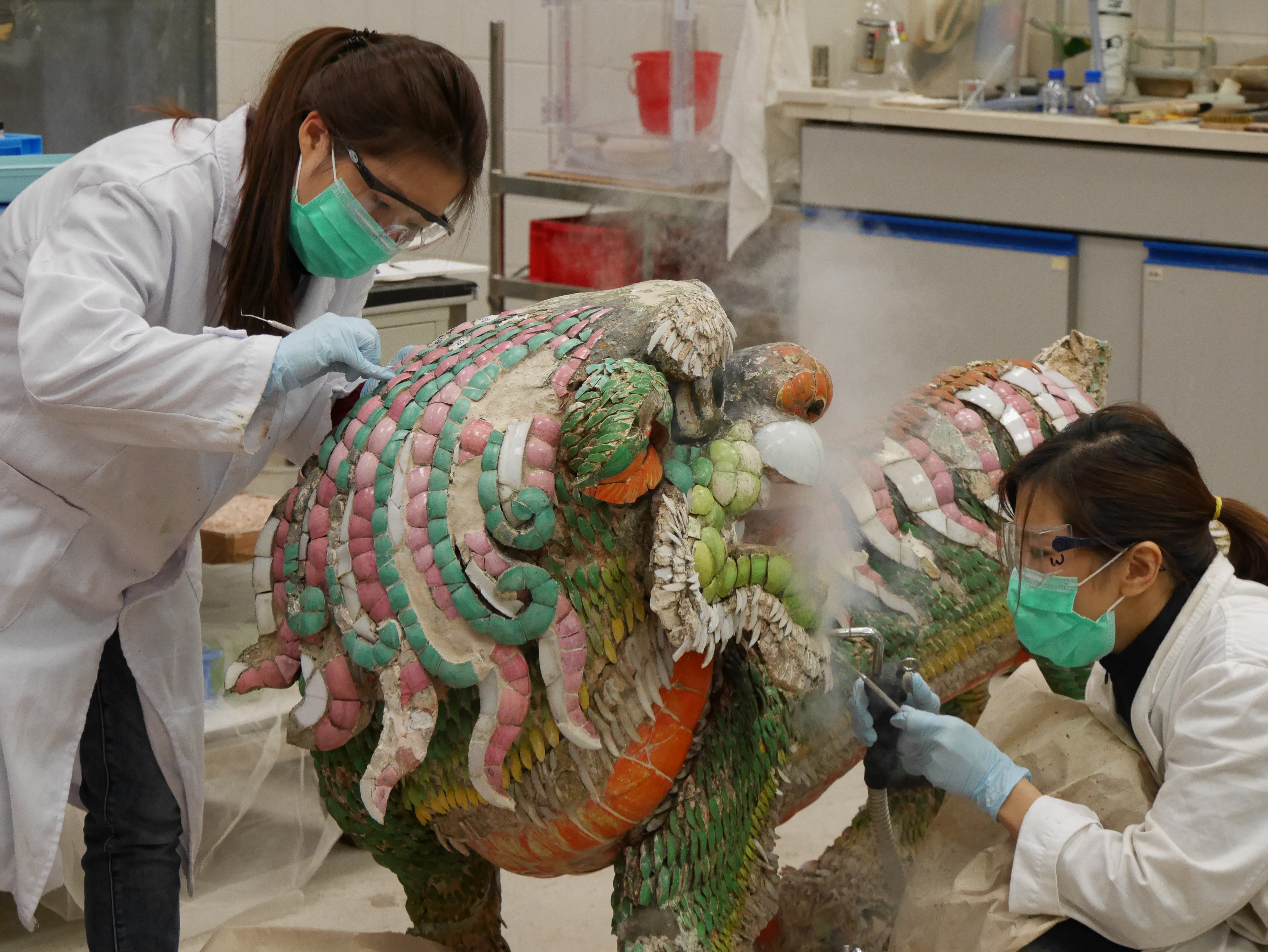 以蒸氣為剪瓷獅子雕像清潔 圖:主辦方提供