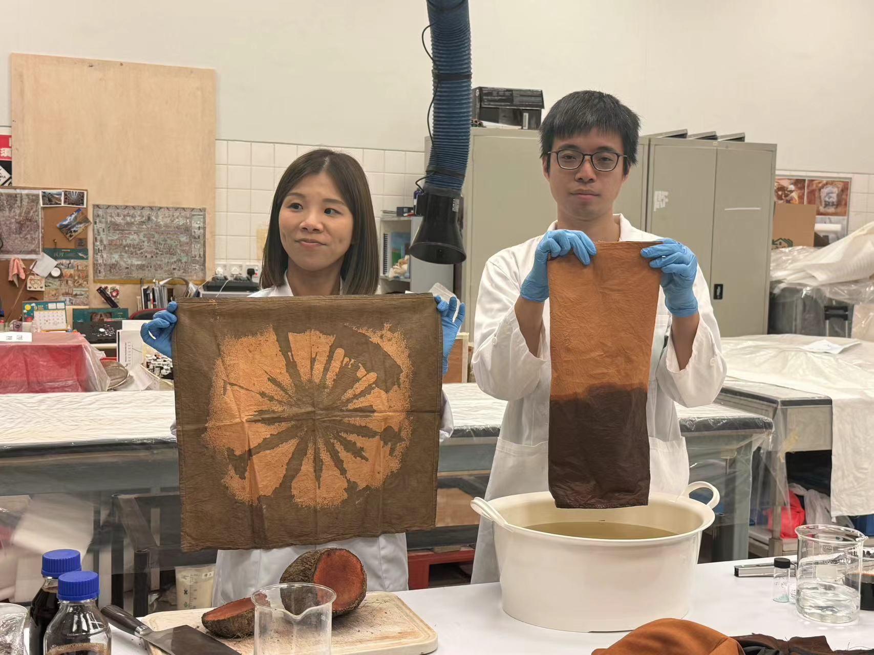 延續文物生命不能單靠專業人士的努力,文物修復辦事處也準備了一系列公眾參與活動,包括文物修復義工、學校文化日、文物修復講座、修復室幕後遊、學生大使培訓、香港博物館節特別活動等,提升公眾對文化修復的興趣和認識。他們將文物修復技術的元素轉化為工作坊,而當日甘婉君便為大家展示了實驗室臨仿香雲紗(「現代曬莨」)的箇中奧秘: