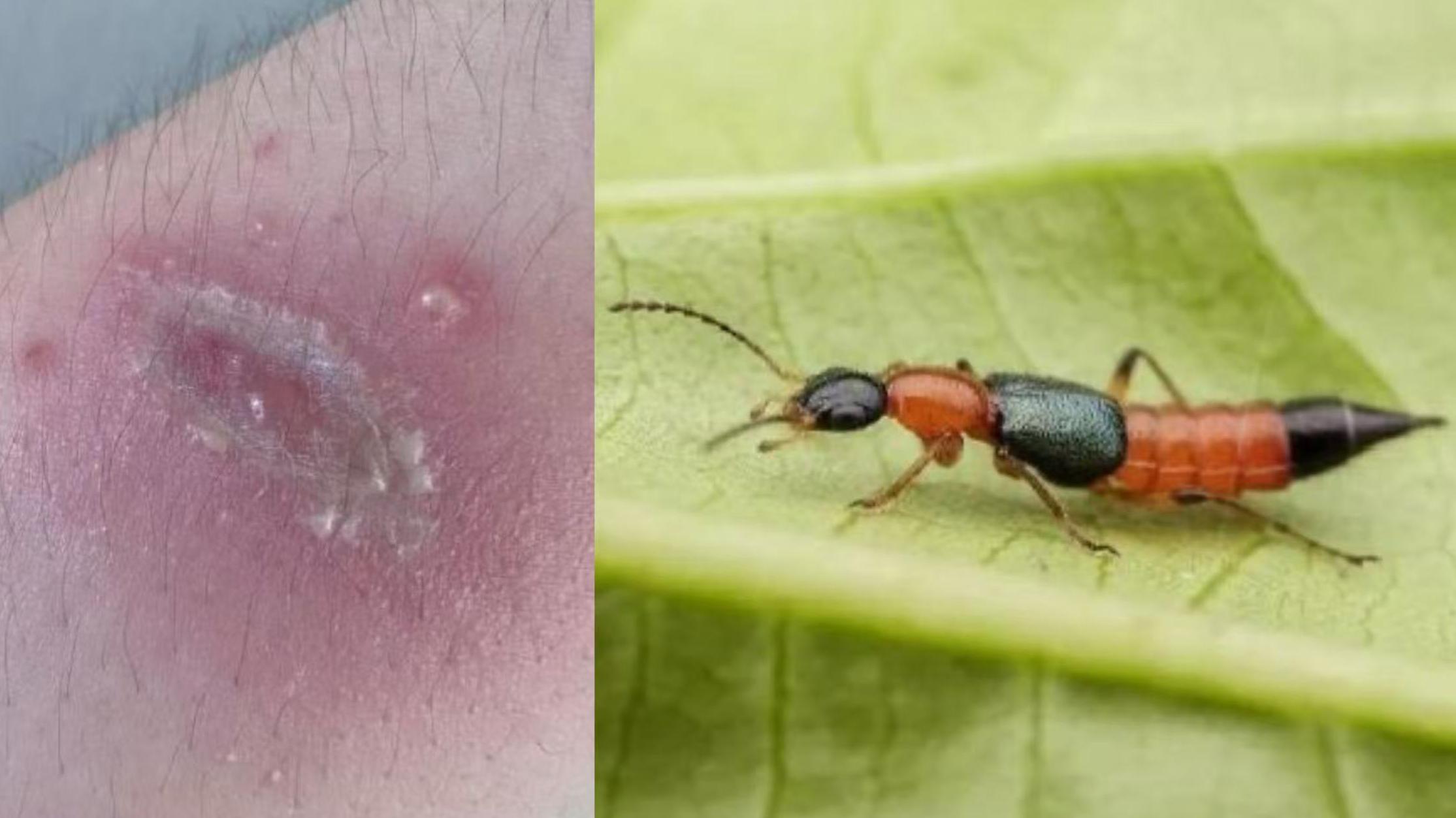 男孩拍打隱翅蟲後用錯藥物全身潰爛。