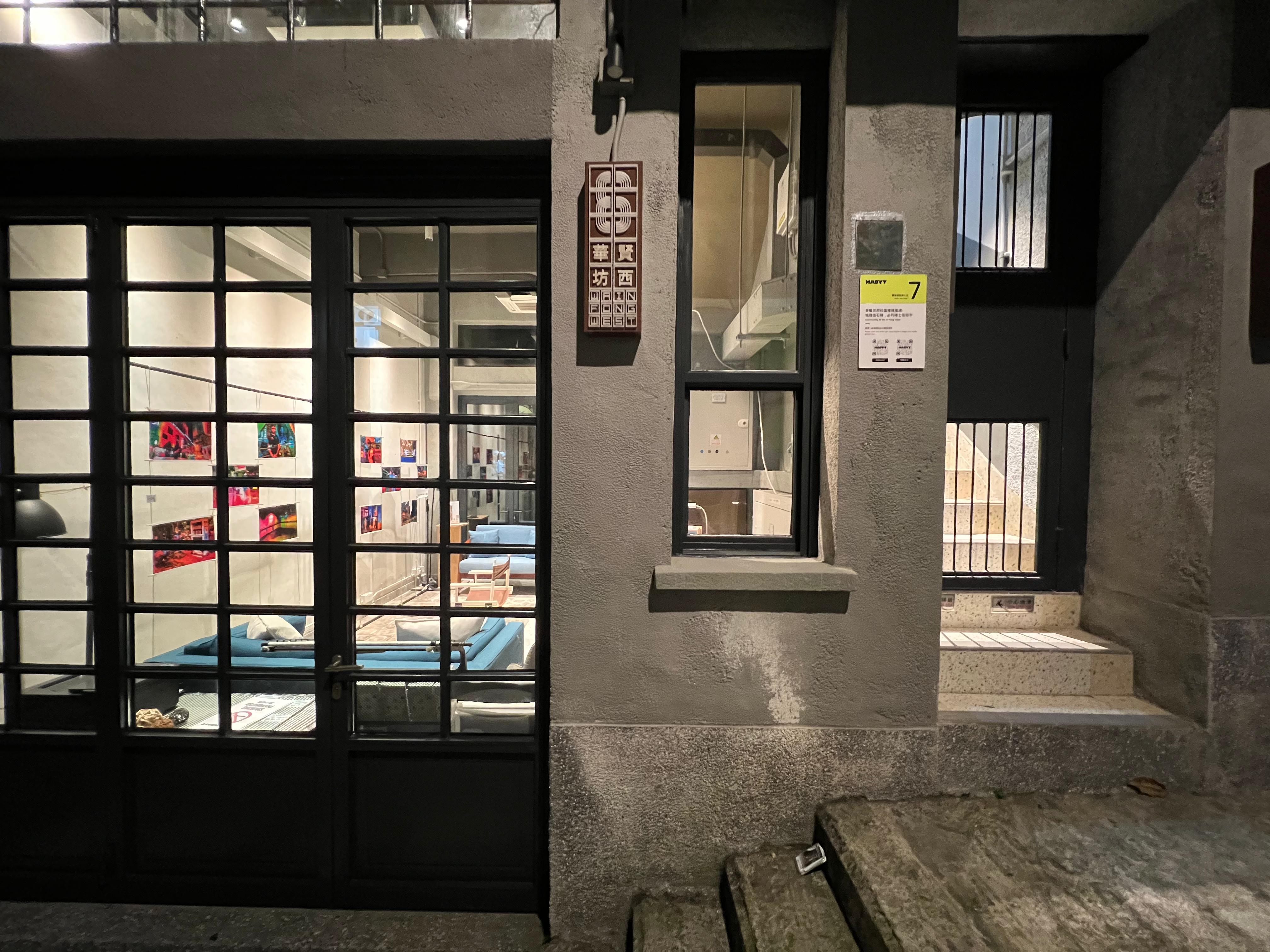 「聽城」部分在華賢坊西Community Room by HABYT展出,和香水店的「自愛」部分一樣,同樣有十幅作品。展覽選址華賢坊西Community Room by HABYT,事緣有次Alan在中環到堅尼地城地區閒逛,經過城皇街聚賢居一帶時被一棟灰色樓吸引,因為它於附近的高樓大廈格格不入,而且所有的窗上都貼著膠紙,當時他便暗下決心:如果這棟樓不拆,希望能有機會在這裡做展覽,或者以它為主角做一個藝術作品。誰知機緣巧合,朋友邀請他在對方的Community Room做藝術分享時,發現場地所在位置,正是那座令他印象深刻的樓。而他更了解到,他父親在搬去澳門前,有不少在附近出生成長的記憶,在此地辦展,也有些「尋根」之意。因此,「聽城」主題的「半透明人間」便選址此地,讓相中的主角,講述自己與「城」中某個角落的故事。