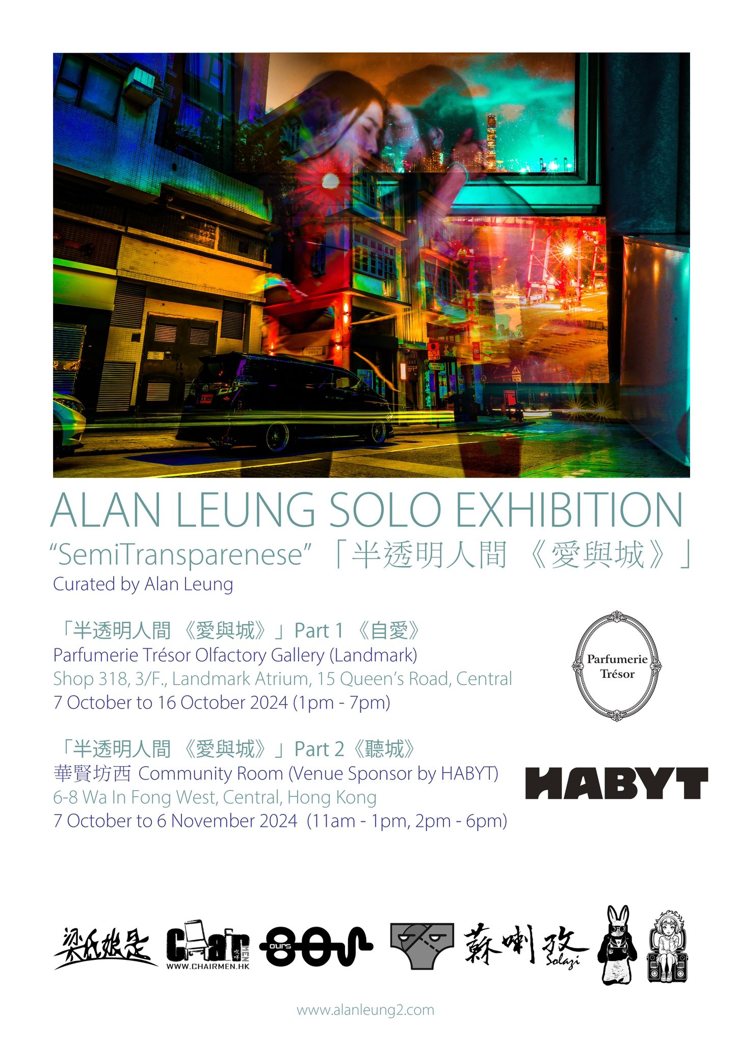 「半透明」其實可以有不同的解讀方式:悲觀的人看到「消失」,積極的人看到「出現」,而Alan想借用他最近很喜歡的電影《鬼才之道》中的概念,表達「原本快要消失的我,努力被人看見」的訊息。而在保育成功的古宅和因為置地廣場裝修下月要關門的香水店同時辦展,一新一舊的對比,也是Alan認為此次展覽的有趣之處。