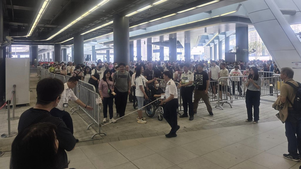 前往深圳灣口岸的B2巴士站,出現長龍。