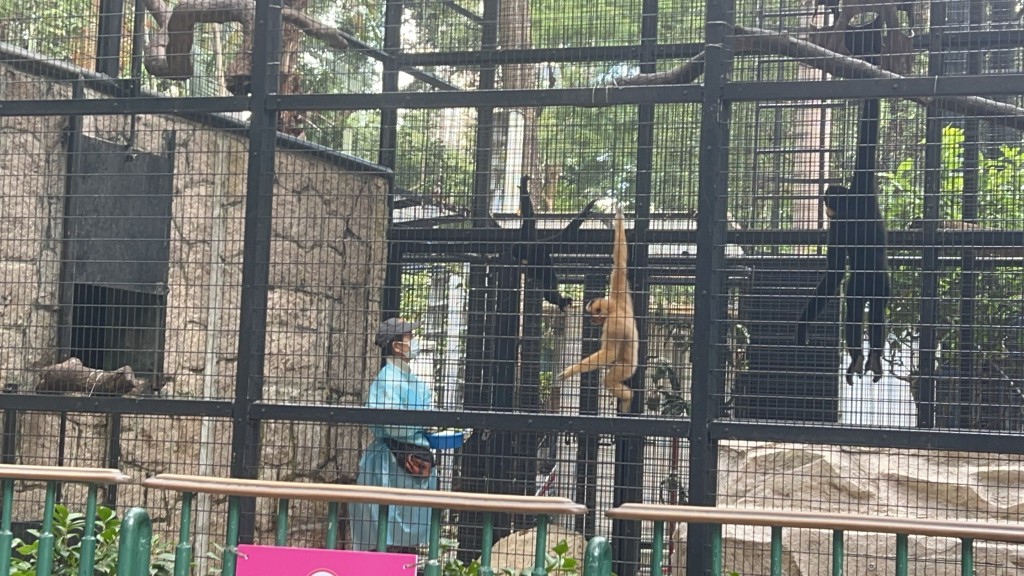 哺乳類動物區出入口有保安員看守,他們均戴上口罩。傳媒從閘外遠望,可見哺乳類動物區大鐵籠內仍有其他猴子如常走動,有職員穿上保護衣,進入籠內餵飼猴子。至於動植物公園內其他設施,則如常開放。