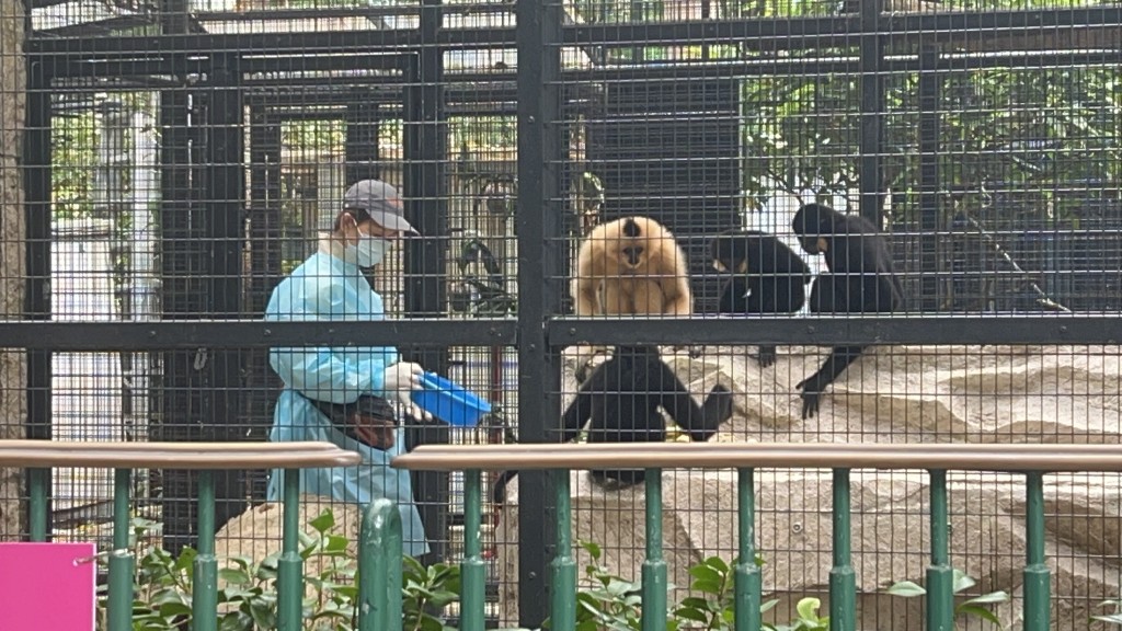 【橙訊】康文署今日凌晨通報,香港動植物公園昨日有8隻動物死亡,園內的哺乳類動物區即日起暫停開放。今日早上,哺乳類動物區已經「落閘」,現場有告示指該區關閉,以進行清潔和消毒工作。職員進入籠內餵飼猴子時亦需穿上保護衣。