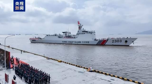 海警梅山艦和秀山艦上午10時許相繼抵達碼頭,中國海警局直屬第二局在碼頭舉行了盛大的歡迎儀式,以迎接編隊的歸來。