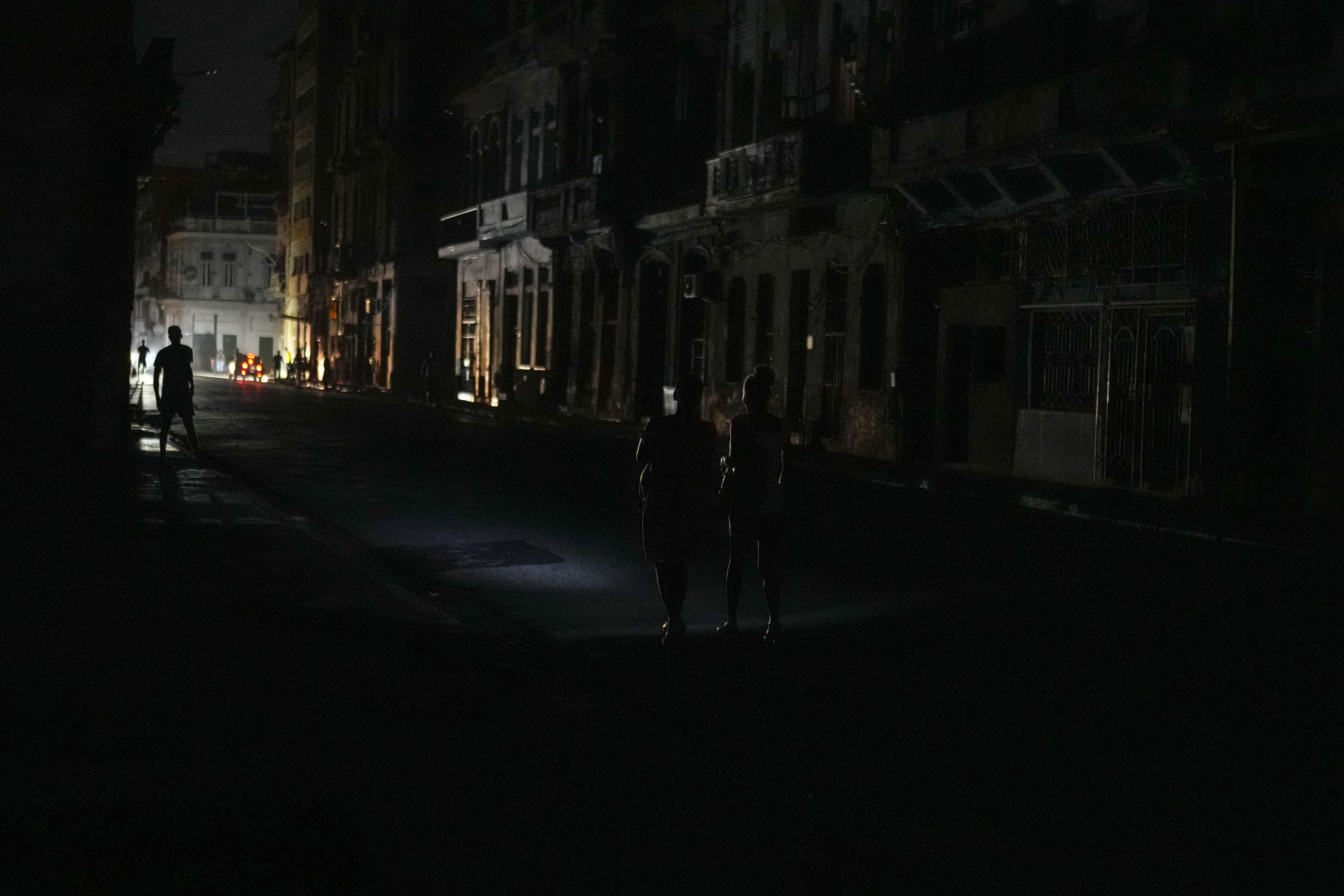 受停電影響,古巴首都哈瓦那晚上市面一片漆黑。