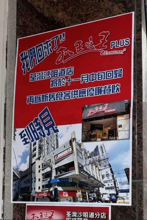 據悉,荃灣沙咀道舖位一直由扒王之王持有,分店結業後便租予「校長燒肉」,號稱「反攻深圳」的後者於今年9月15日結業,最終「扒王之王」收回舖位。
