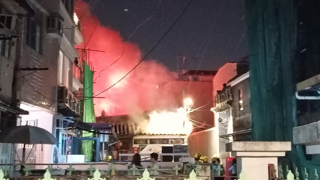 元朗舊墟長盛街大王古廟晚上發生火警。