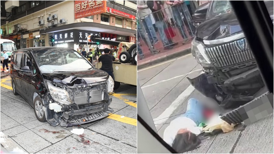 網上圖片所見,意外後七人車車頭嚴重受損,泵把甩脫,其中一名受傷途人腿部重創倒地。救護員其後趕至後,將兩名傷者同送東區醫院救治。