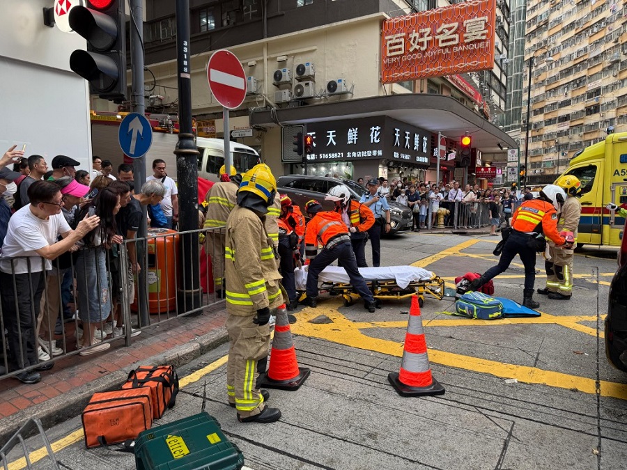 北角七人車疑落斜撞兩途人,一女腿部重創昏迷 。