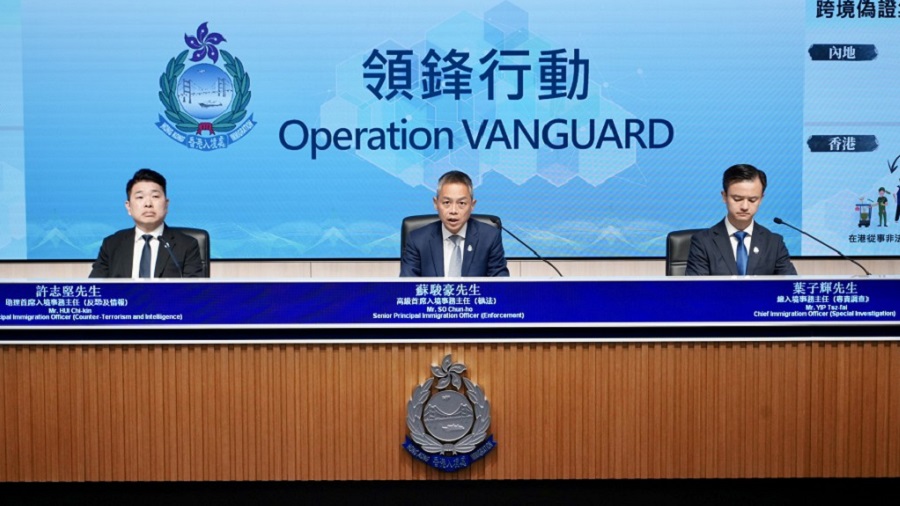 【橙訊】有內地不法中介透過社交媒體招攬黑工,宣稱可一條龍安排赴港,包括提供假身份證及安排住宿。在國家出入境管理局統籌下,本港入境處今年7至8月期間,與廣東廣西出入境管理部門,以及深圳邊檢機關聯合行動,成功瓦解一個同一手法的黑工假證集團。行動中兩地共拘捕201人,檢獲大量假證及製造設備。其中,本港入境處於代號「領鋒」行動中拘捕97人,包括集團在港主腦及骨幹,並破獲多個黑工在港居住宿舍。