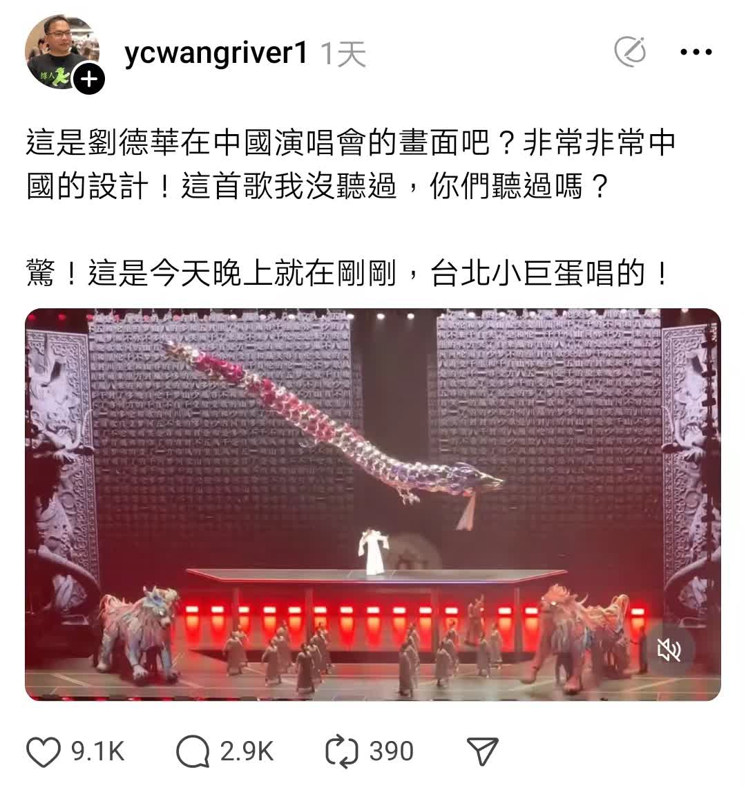 【橙訊】因颱風康妮影響,原定於10月31日在台北小巨蛋舉辦的劉德華演唱會,改為11月1日晚間舉辦,其中一首曲目《中國人》遭綠營攻擊,國民黨籍桃園市議員凌濤稱,「綠營雙王」民進黨民意代表王定宇、民進黨政策會執行長王義川連日攻擊劉德華,已成「歌曲文字獄」。