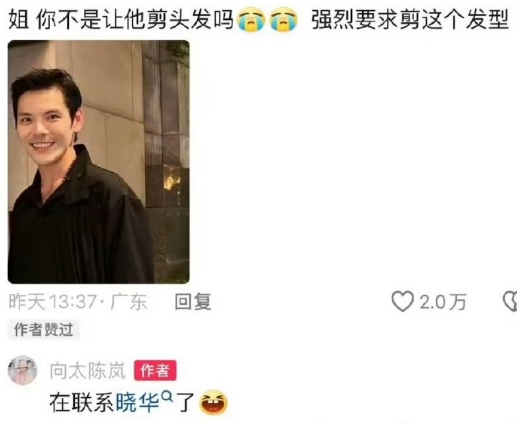【橙訊】湖南懷化女髮型師李曉華近日在網絡走紅,因其憑藉精湛的理髮手藝以及充分顧客需求的服務態度,網友們紛紛拍手叫絕,稱她「聽得懂話」。有網友昨日(10日)向太陳嵐評論區貼了一張其兒子向佐此前的短髮造型,並喊話剪回這個髮型,向太回覆稱「在聯繫曉華了」。