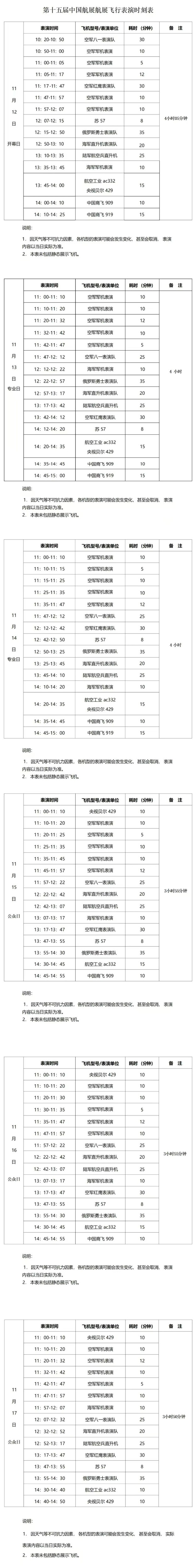 珠海國際航展中心飛行表演時刻表