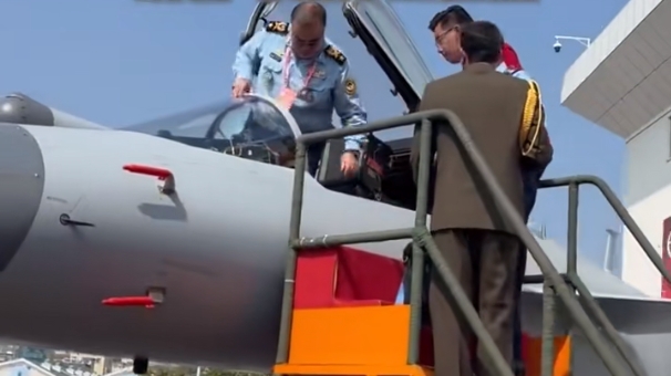 據內媒報道,伊朗空軍司令瓦赫迪上午登上殲-10CE。他先是進入座艙進行體驗,隨後與隨行人員繞着飛機參觀。