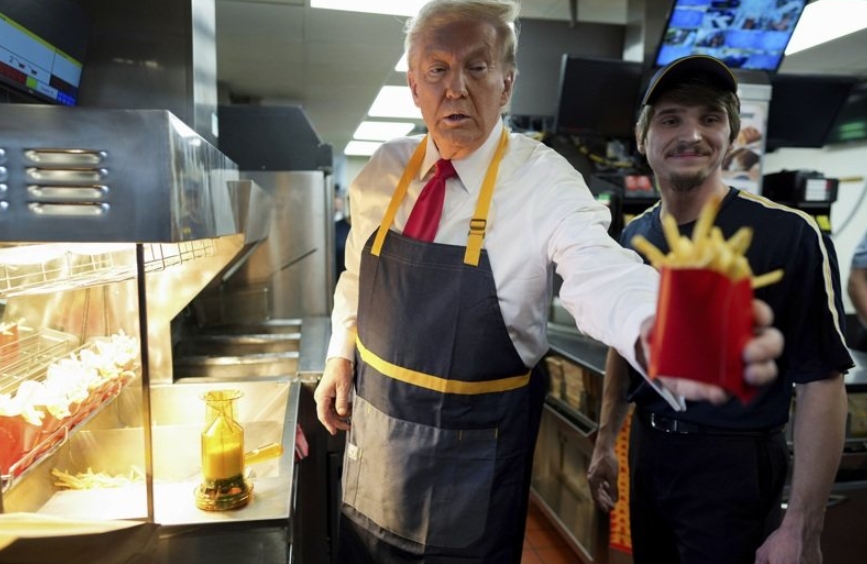 特朗普競選期間曾短暫出現在賓夕法尼亞州的一家麥當勞。
