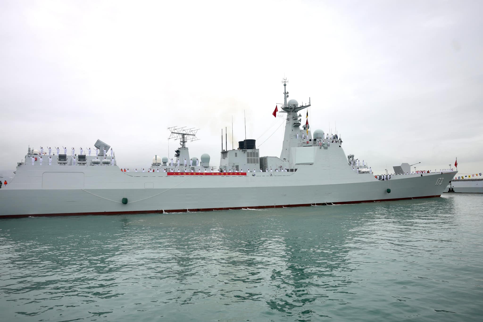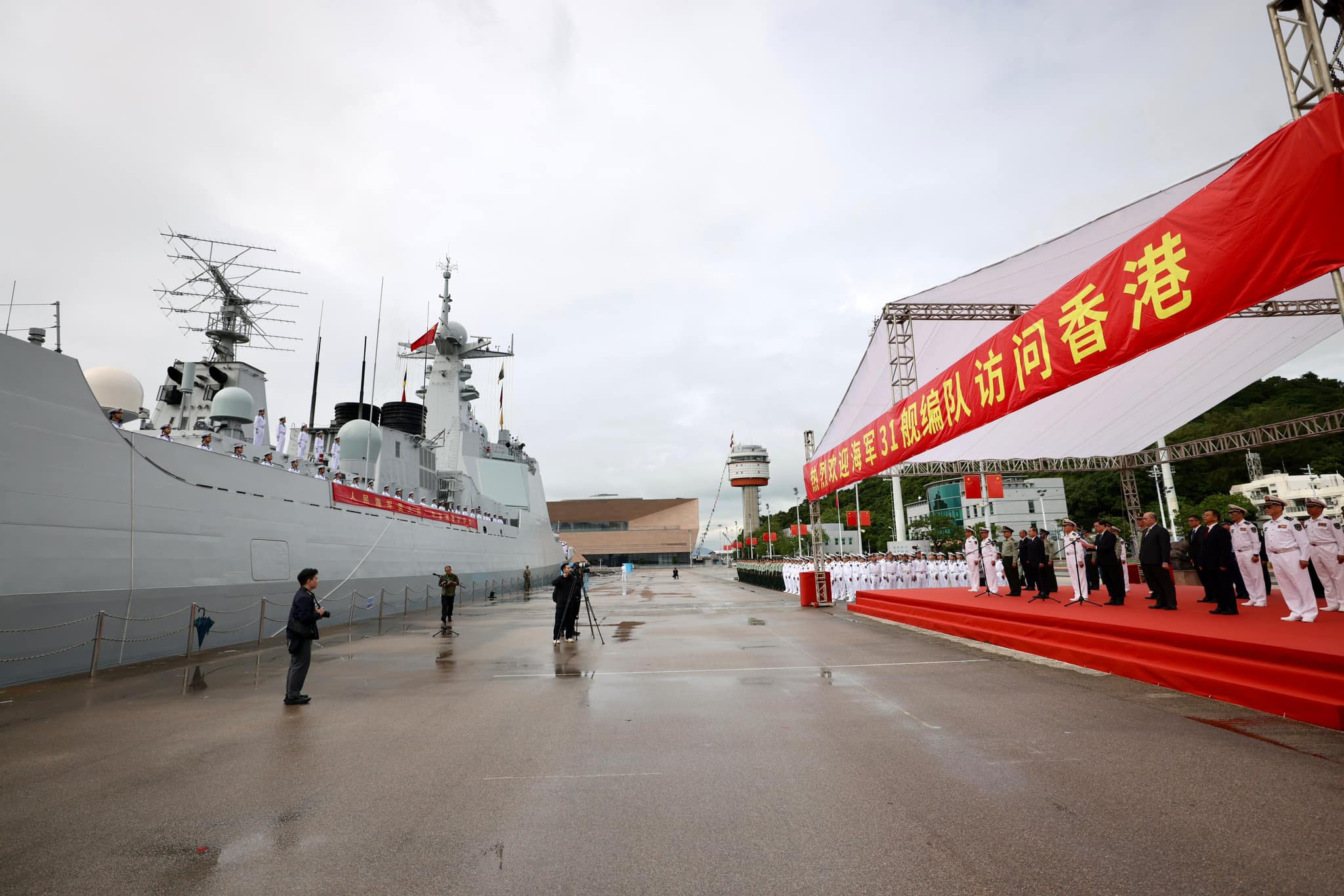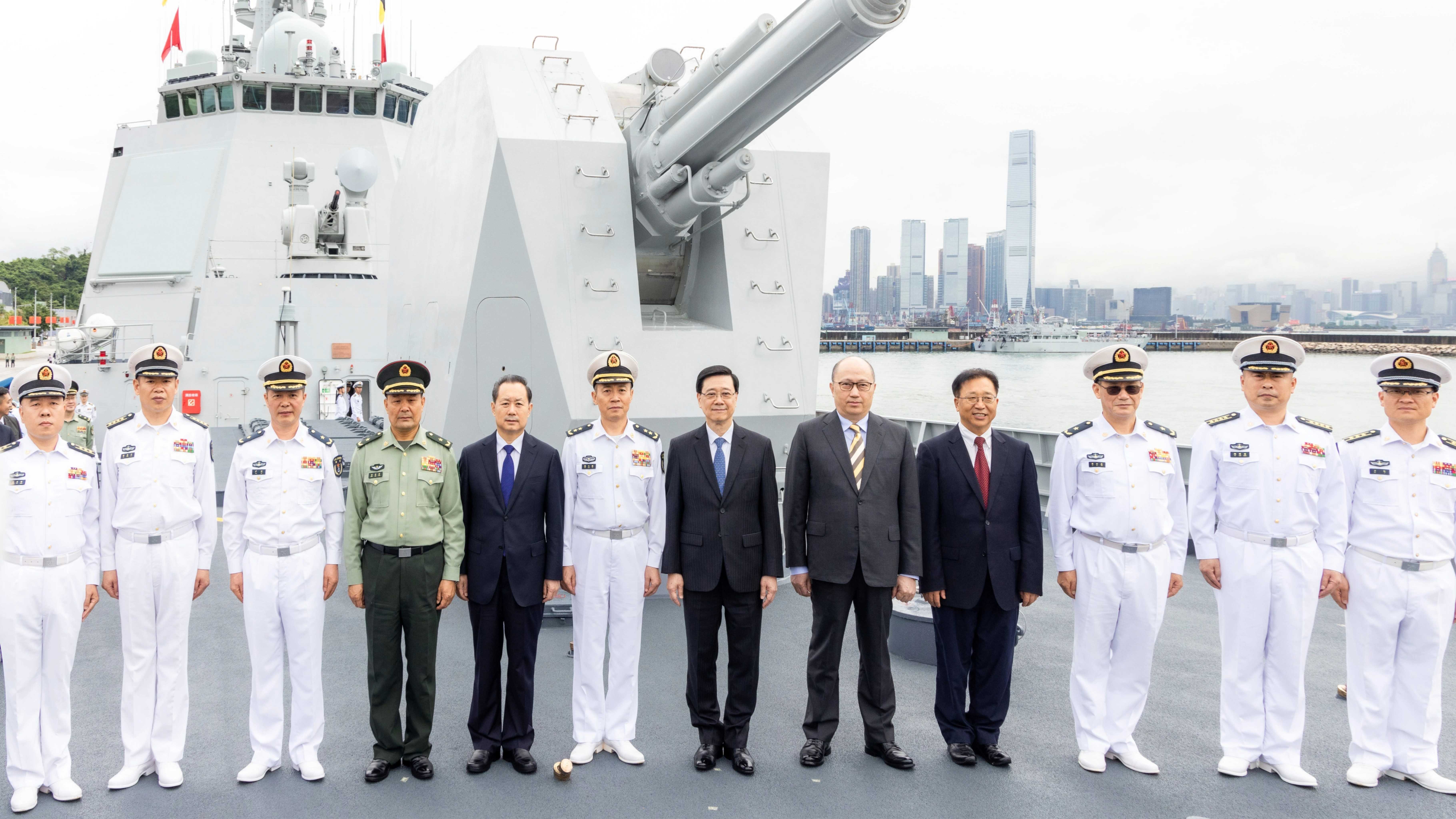 李家超代表香港特區政府和市民熱烈歡迎中國人民解放軍海軍「三一」艦編隊訪港。