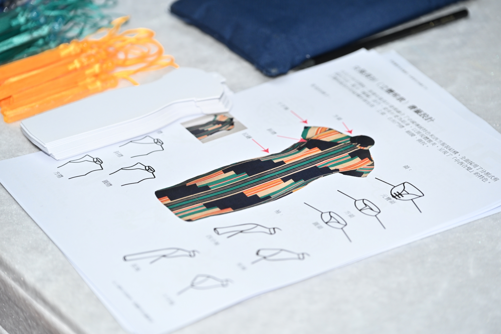 隨後,吳國禧及其團隊成員帶領觀眾製作長衫造型的書籤,讓大家都能設計一件屬於自己的長衫。吳國禧介紹了長衫發展的歷史故事和版型,男女裝大裁長衫均為傳統中式平面剪裁,衫身上窄下寬呈鐘形;女裝小裁長衫承中式平面剪裁,衫身窄長,前後通幅。