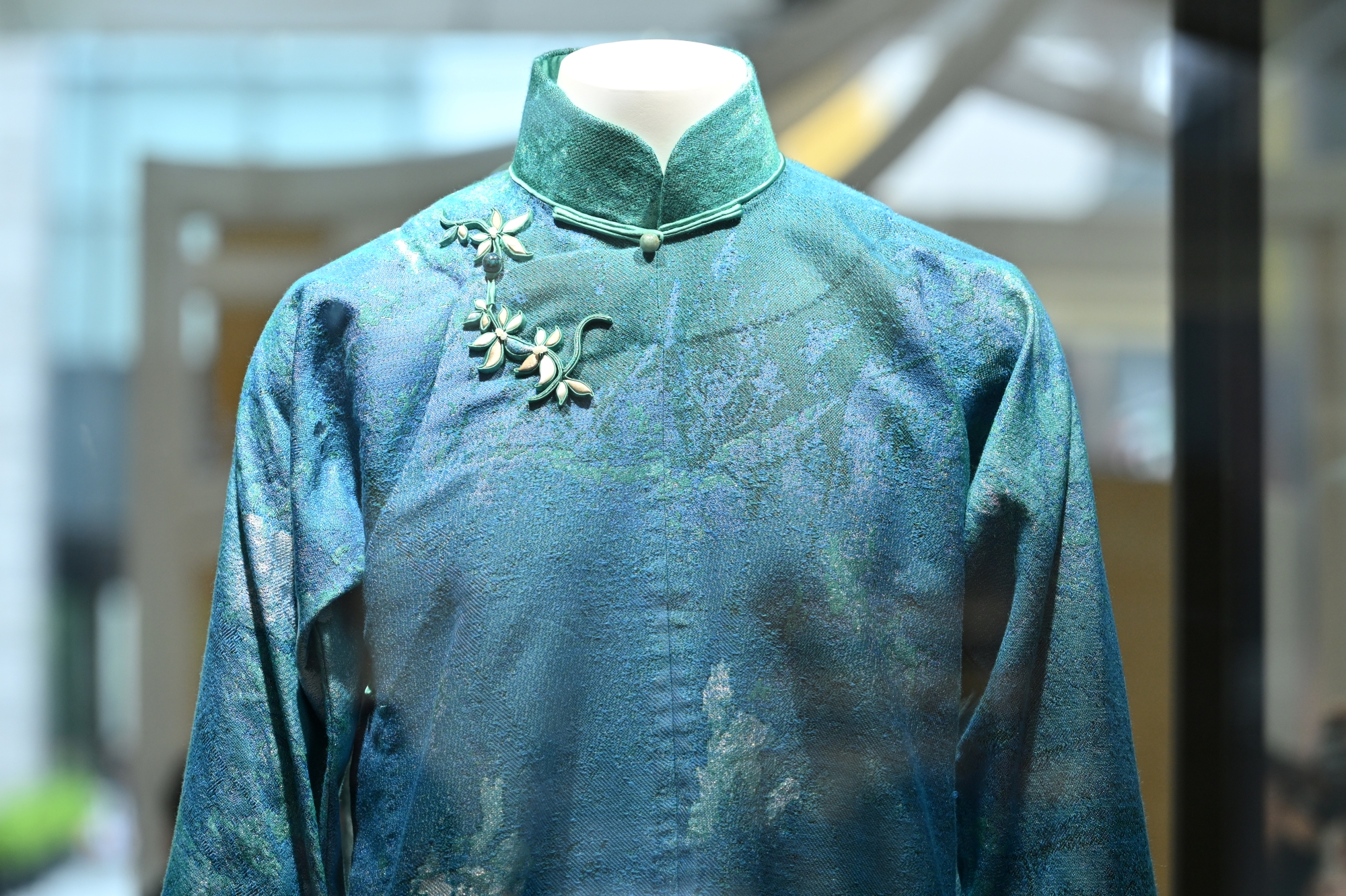 走進展覽區域,可以看到多件經過精心設計的中式長衫,它們的顏色、形製各有特點,有的呈傳統剪裁,有的與現代時裝風格結合,展示著中式長衫這一傳統服飾的文化底蘊和創新生命力。而「香港中式長衫和裙褂製作技藝」也於2017年列入「香港非物質文化遺產代表作名錄」,屬傳統手工藝類,是具有高文化價值和急需保存的項目。