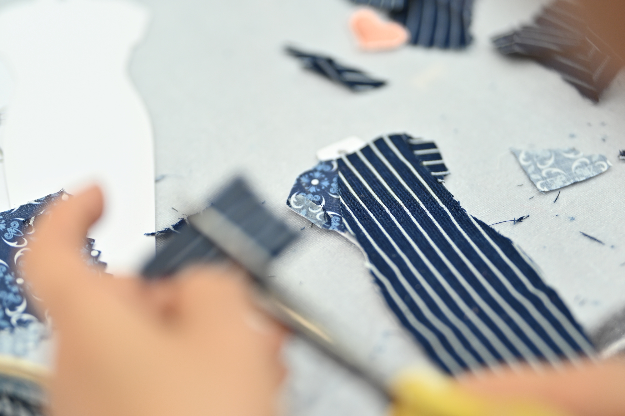 現場提供多種花色的布料,觀眾可自行挑選,然後根據長衫的形制構造,在空白書籤上拼貼出屬於自己的長衫,亦可根據個人喜好植入較為創新的時尚設計,有人將紐扣製成了心形,有人設計了鏤空領子。