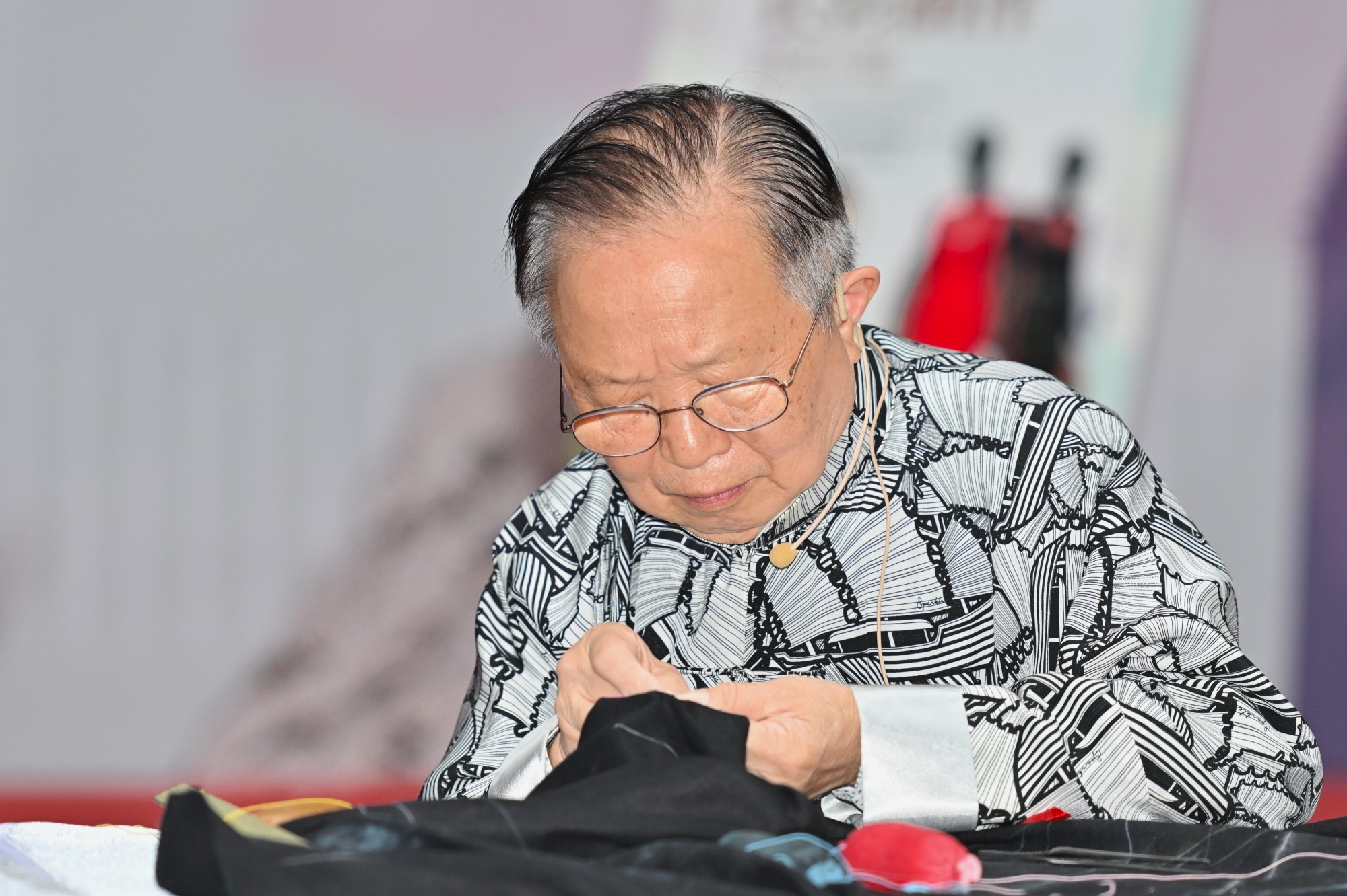 活動現場展出的長衫出自香港長衫協會教育理事吳國禧及其團隊之手,11月23日,吳國禧與香港海派旗袍大師封有才來到深業上城,為觀眾展示中式長衫製作技藝。