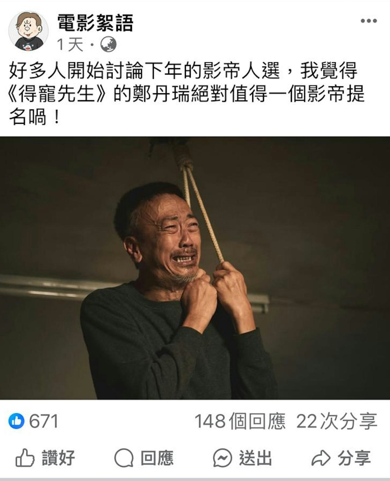 旦哥的演技得到網民力讚,更表示他值得入圍明年金像獎影帝。(圖:《得寵先生》劇照)