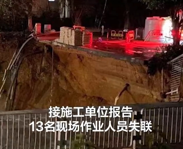 深圳寶安區鐵路施工現場地面坍塌,13人失聯。