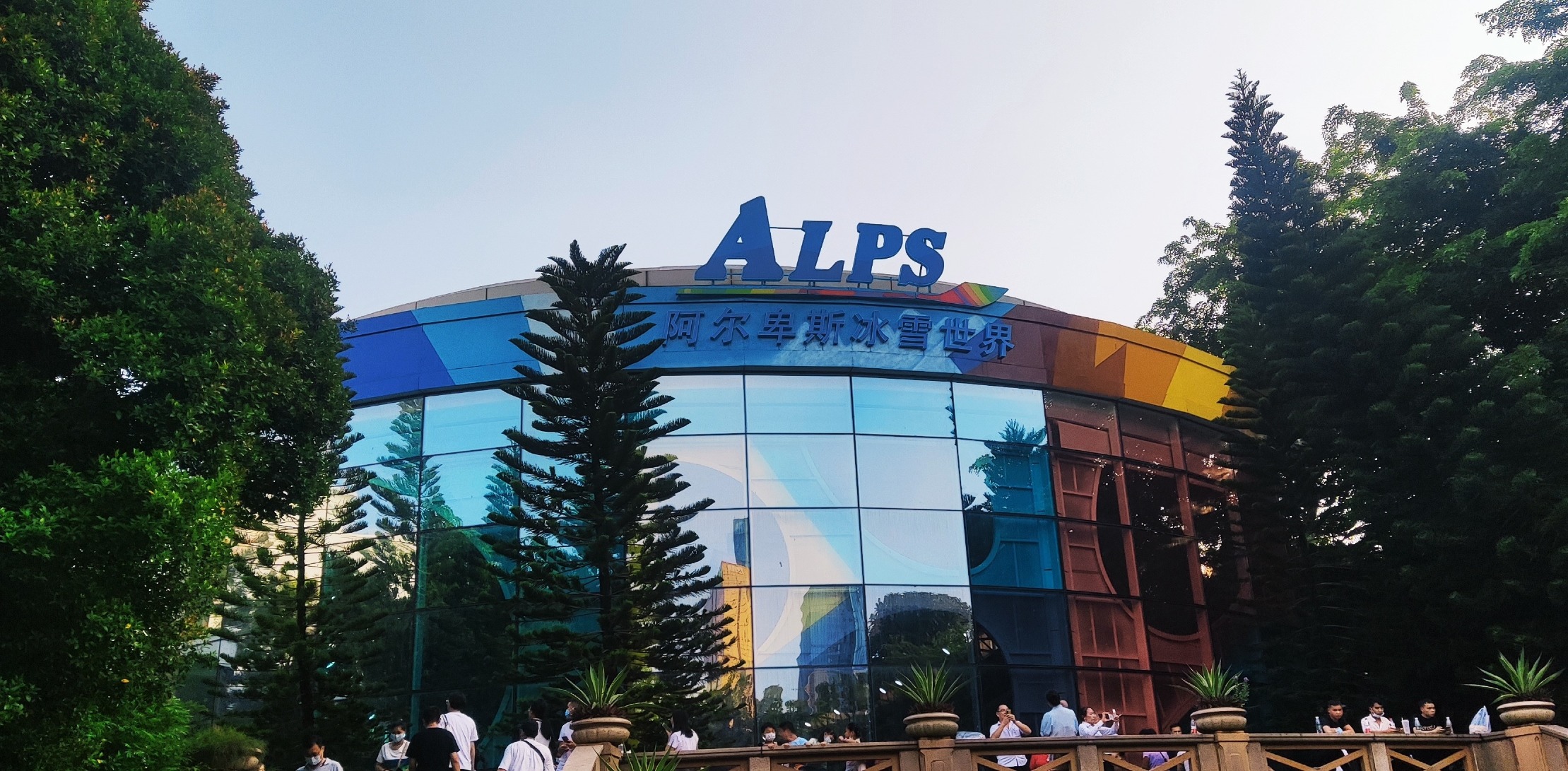 阿爾卑斯冰雪世界分為滑雪區、溜冰區及冰雕區。滑雪區又分專業滑雪區及輪胎滑雪區。專業滑雪區設有一條約15米寬、約70米長的的專業滑雪道,上至下高度落差達20米,加上筆直且無柱式設計,可體驗從上而下俯衝的快感,喜歡刺激的話必要一試。