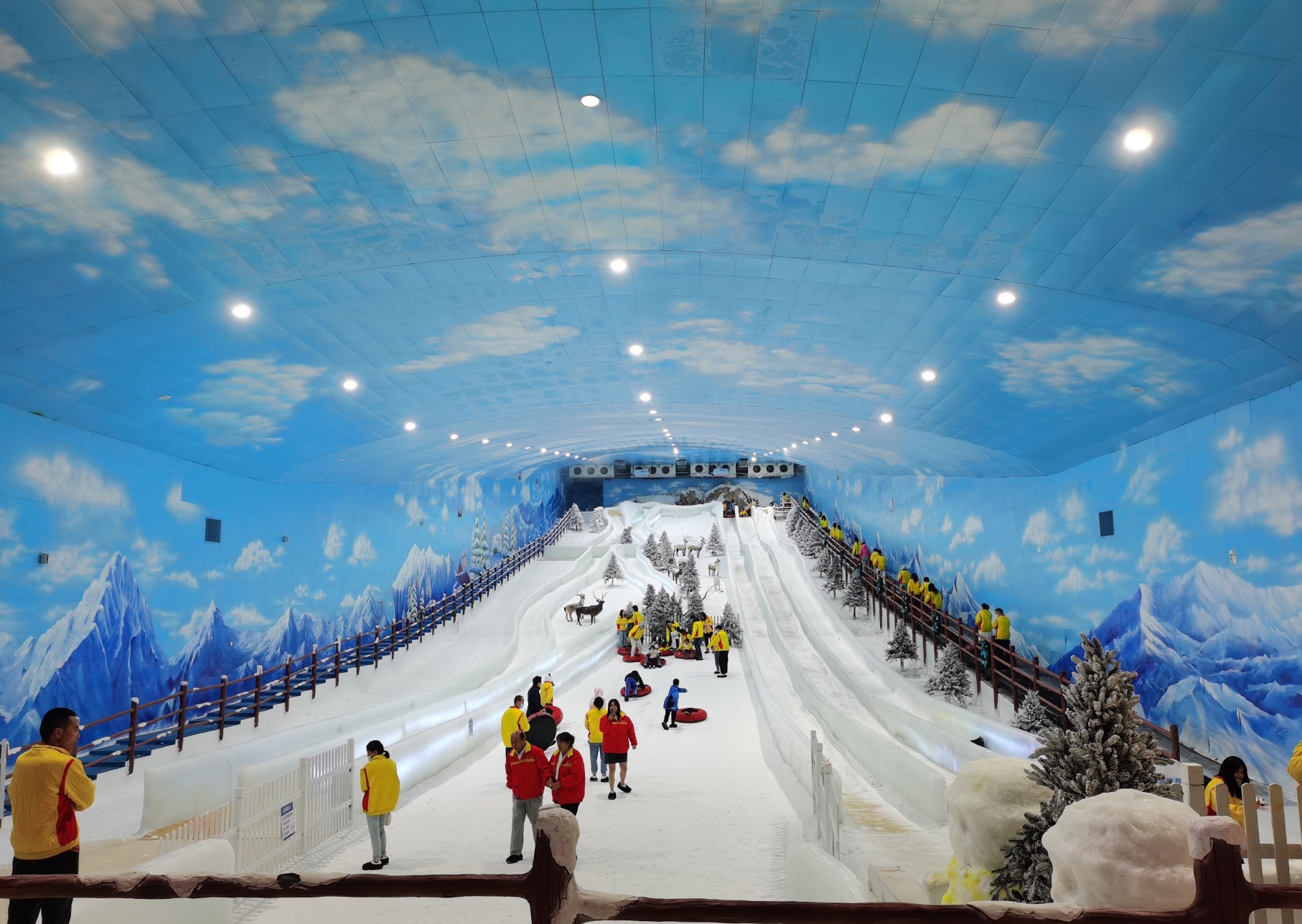 較遠一點的,位於龍華區觀瀾湖生態運動公社內,就有深圳目前最大的室內滑雪場,名為「卡魯冰雪世界」。