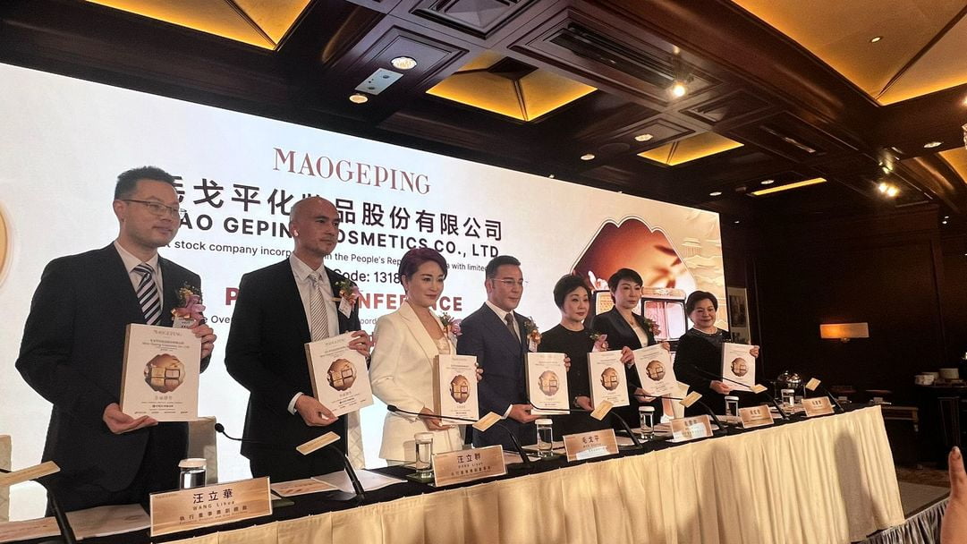 毛戈平上市記者會。